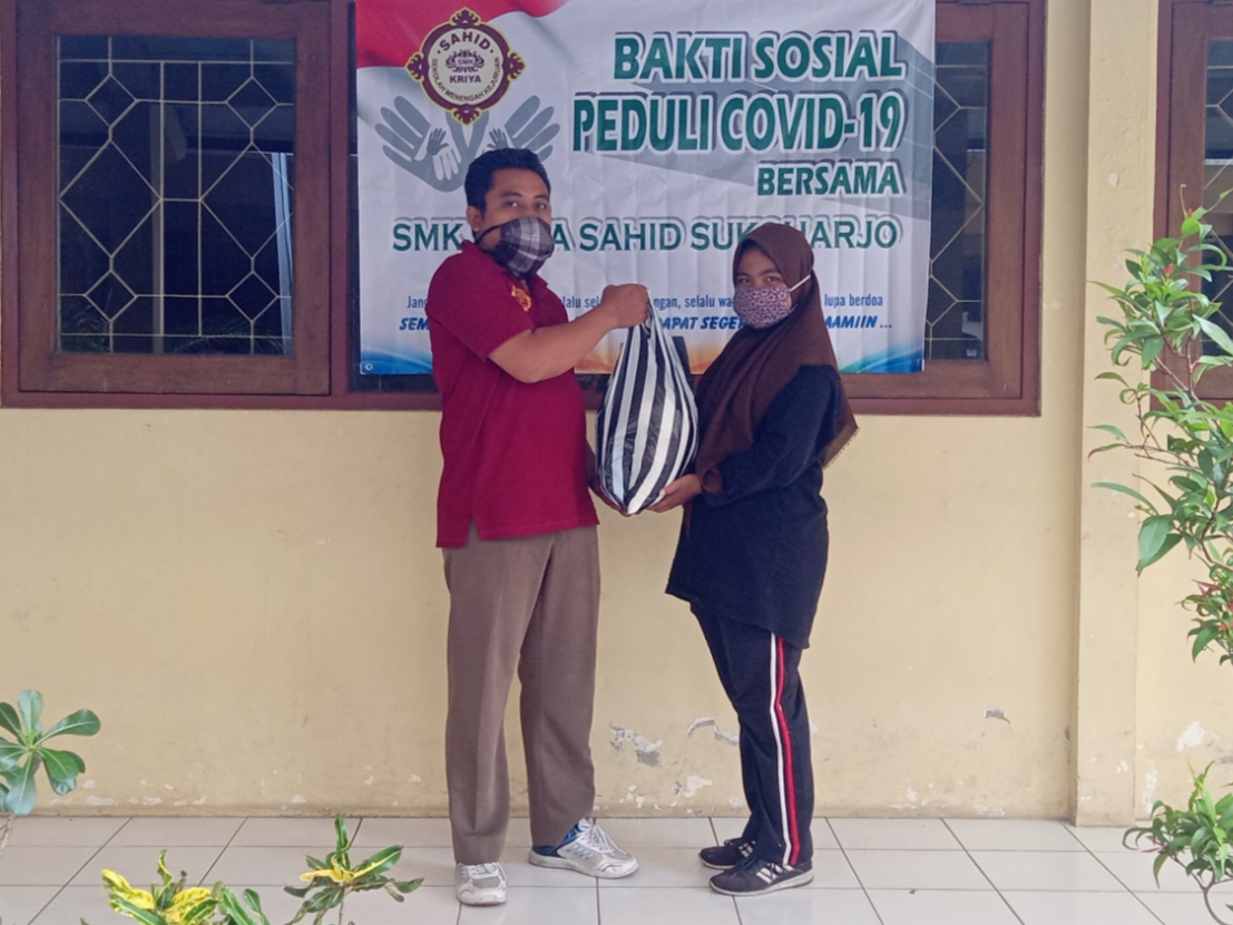 Wabah Covid-19 yang saat ini sudah menjadi wabah nasional, bahkan internasional, memaksa kita semua untuk beraktifitas di rumah saja. Selain berdampak pada dunia pendidikan, dengan terhentinya aktifitas KBM yang biasanya dilakukan dengan tatap muka langsung di sekolah, juga sangat berdampak pada ekonomi masyarakat. Banyak masyarakat menengah ke bawah yang menjadi korban Covid-19 secara ekonomi. Pendapatan harian berkurang drastis. Tak terkecuali keluarga dari siswa-siswi SMK Kriya Sahid Sukoharjo.