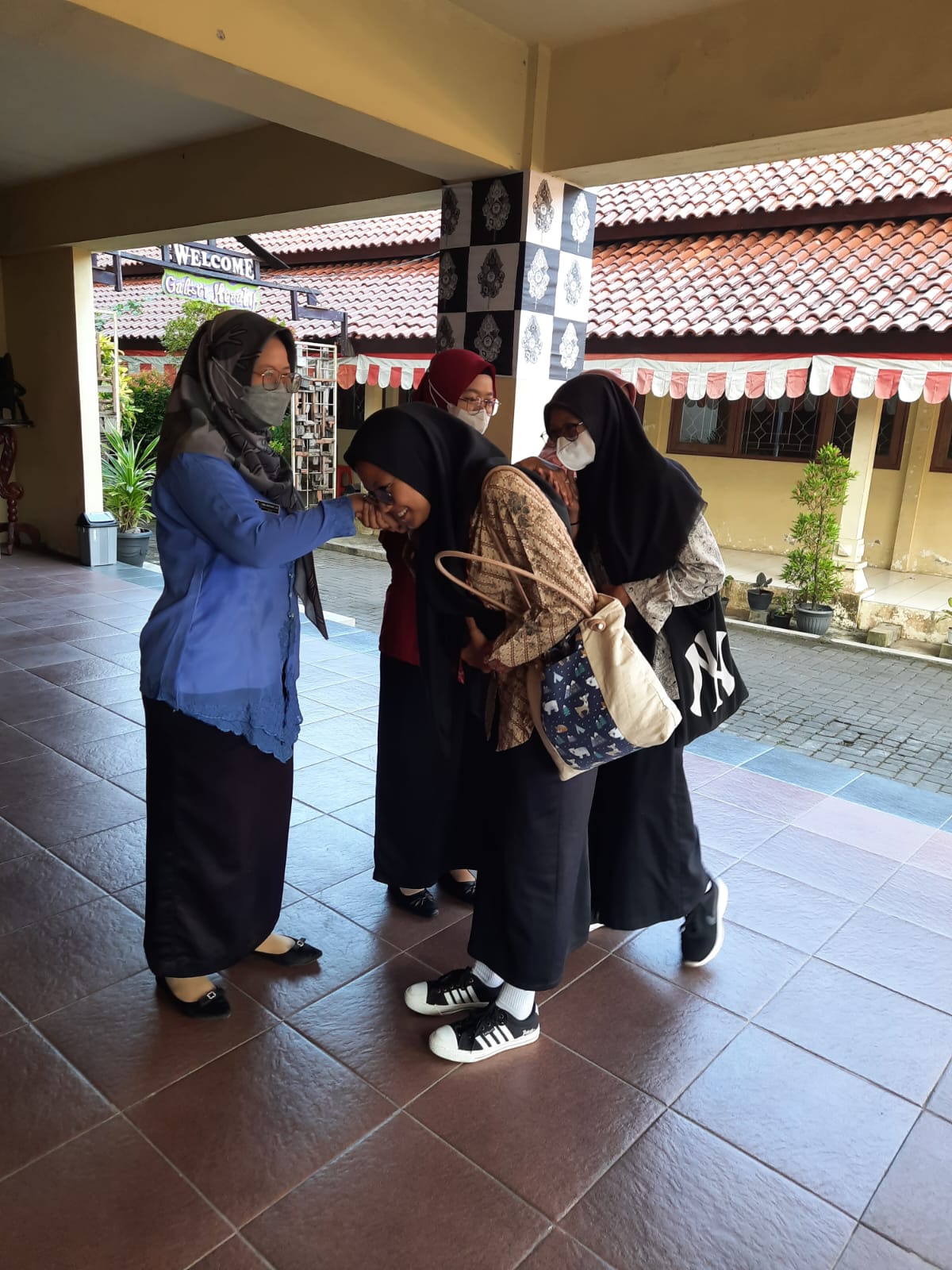 Siswa memberikan salam kepada guru dengan menggunakan Bahasa Jawa