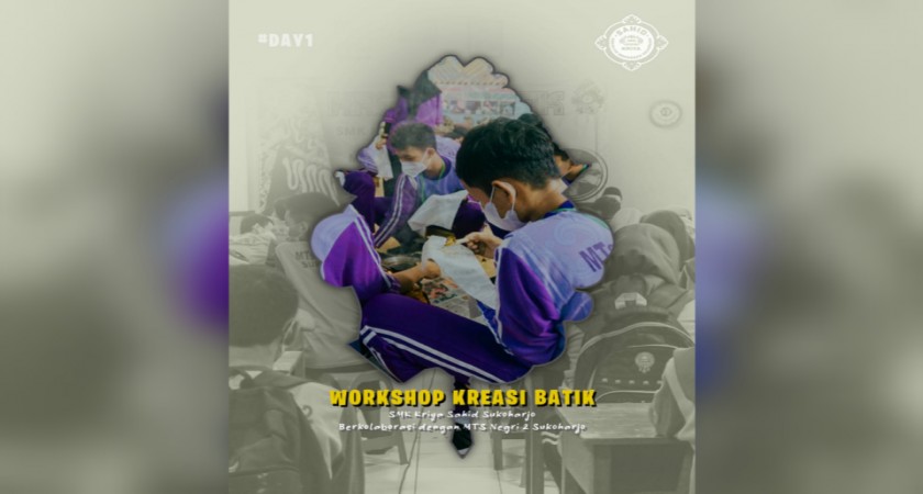 SMK Kriya Sahid Sukoharjo menunjukkan eksistensinya sebagai sekolah unggulan berbasis Seni dan Industri Kreatif, mengadakan kegiatan Workshop Kreasi Membatik berkolaborasi dengan MTSN 2 Sukoharjo. Bertempat di Galeri Workshop SMK Kriya Sahid Sukoharjo, acara ini dilaksanakan selama 5 hari, tanggal 21 – 25 Februari 2022 dan diikuti lebih kurang 300 peserta siswa/siswi kelas IX MTSN 2 Sukoharjo yang dibagi dalam 6 kelompok.