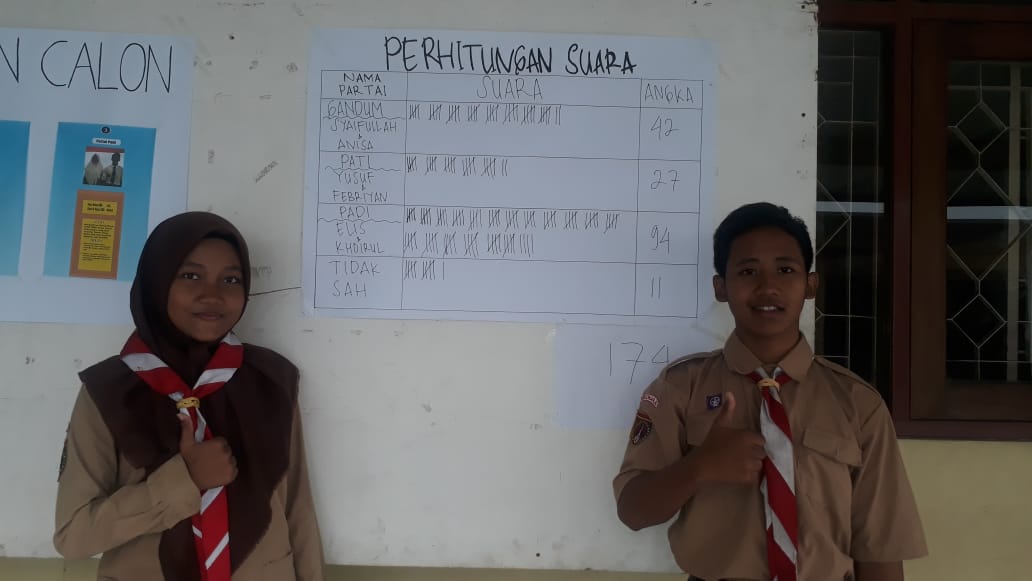 Pemilihan dilakukan oleh semua warga sekolah mulai dari guru, karyawan, dan seluruh siswa. Kegiatan dilanjutkan dengan perhitungan. Perhitungan ini yang akan menjadikan penentuan suara terbanyak. Suara terbanyak tentunya nanti akan terpilih sebagai Ketua dan Wakil Ketua OSIS. Suara terbanyak diperoleh oleh pasangan dari partai padi Elis – Khoirul dengan total suara 94 Suara, disusul pasangan calon dari partai gandum 42 suara dan disusul dari partai pati Yusuf-Febriyan.